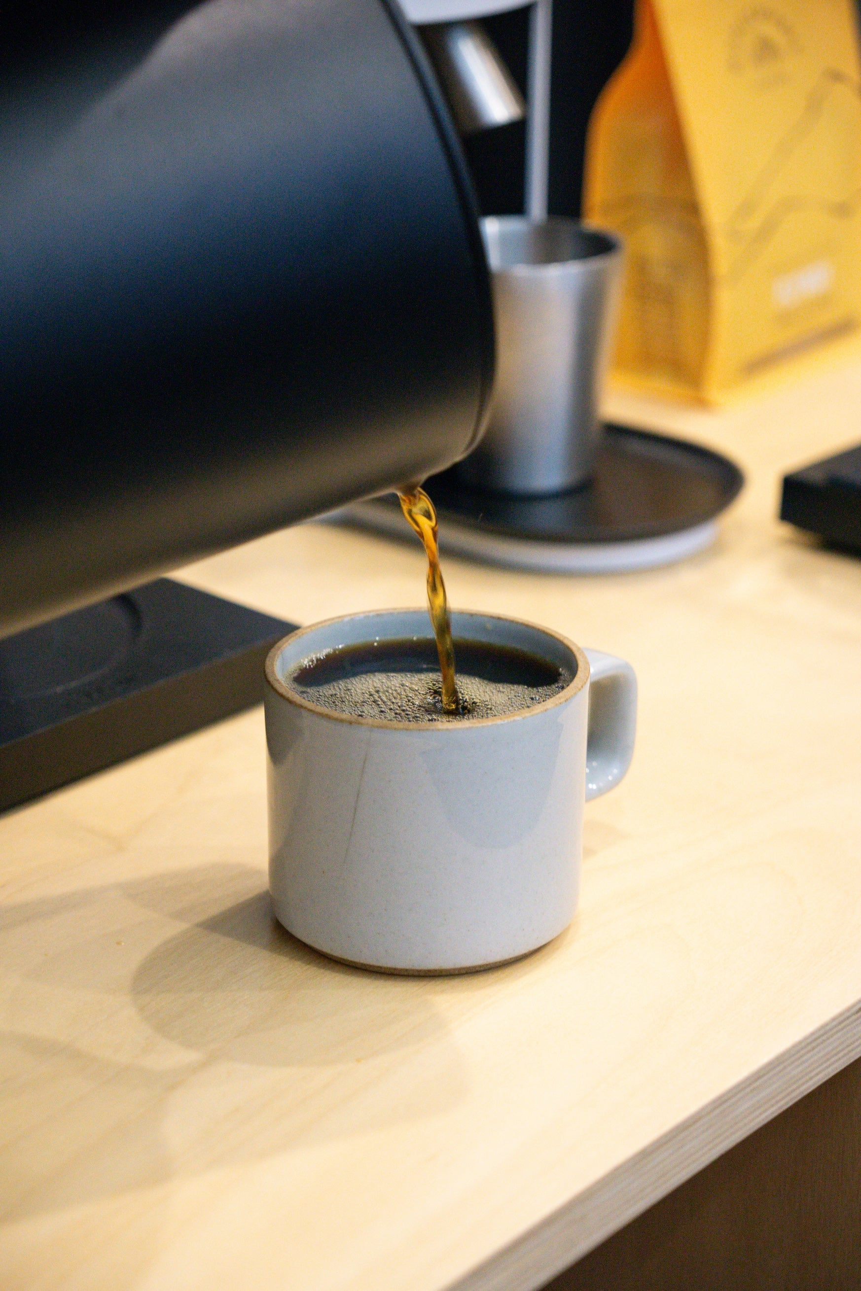 - Set your carafe on the scale, pour in your coffee, and tare to zero.